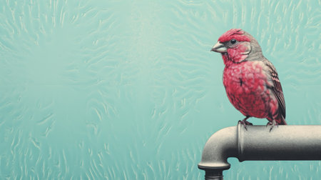 a red bird sits atop a pipe in this vibrant photograph. the image showcases a unique blend of pink and cyan colors, creating a fluid and eye-catching composition. the canvas texture adds depth to the overall aesthetic, while the realistic portrayal of the animal captures its essence. perfect for wallpaper or those who appreciate post-internet aesthetics. ai generated