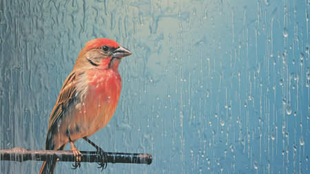 a blue hyperrealistic wildlife portrait with rain falling, showcasing vivid birdlife. the artwork, created using zbrush, features a combination of light red and light cyan tones. the punctuated caricature style adds a unique touch to the piece, mimicking the appearance of ruined materials. this captivating image can be found on flickr. ai generated