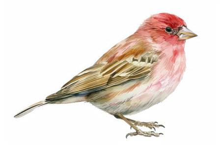 House finch, Pastel-colored, in hand-drawn style, watercolor, isolated on white background