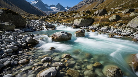 mountain river with glaciers water of the Italian Alps