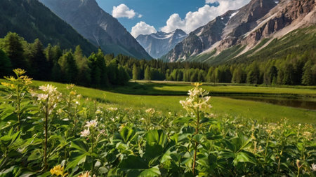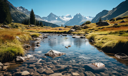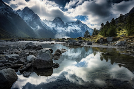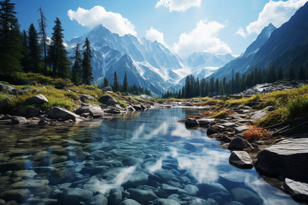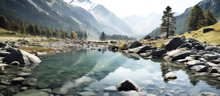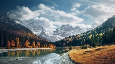 An AI generated illustration of majestic mountains revealing the majestic calm crisp beauty of nature