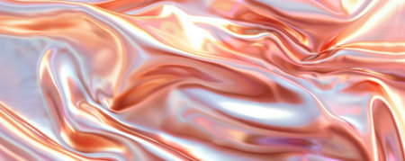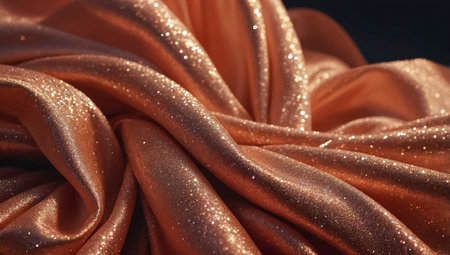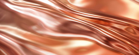 A stunning close-up of shimmering rose gold satin fabric, featuring gentle reflections and flowing drapery, ideal for luxury fashion and design projects.