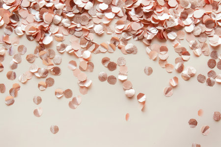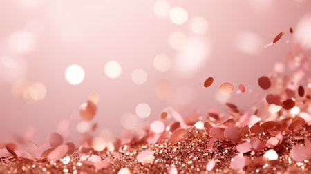 Rose golden confetti scattered on blush pink background. Generative AI illustration
