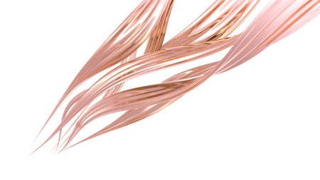 An elegant 3D scene featuring multicolored twisted ribbons in shades of rose gold, bronze, and copper. The ribbons have a luxurious, reflective texture and create a high-end look.