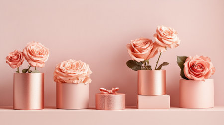 Discover an elegant arrangement of pink roses in chic vases against a soft backdrop, perfect for adding warmth and charm to any space or celebration.