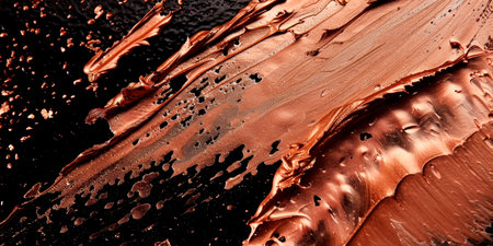 Rose gold brushstrokes on a black canvas, abstract, metallic sheen, Generative AI