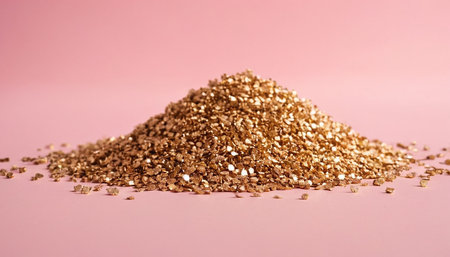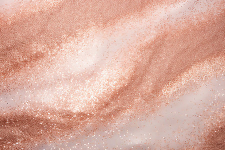 A dazzling display of rose gold glitter glistens under gentle light, creating a captivating sparkle.