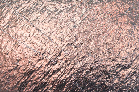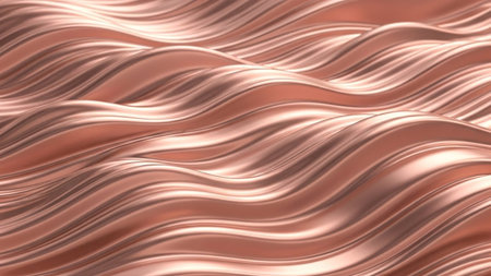 Texture showing smooth flowing waves of metallic rose gold liquid creating a rippling textured surface with soft...