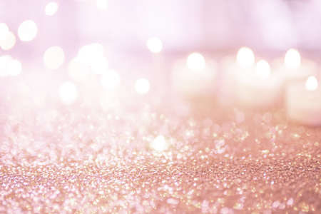 Pink light gold glitter background with bokeh. Festive glamor romantic abstract defocused lights background for Valentines day,women day or party event.