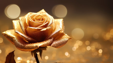 Realistic D golden rose placed elegantly in the center of a minimalist black setting