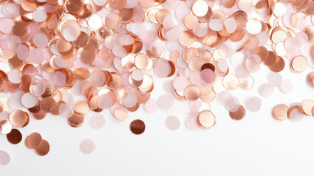 Rose gold confetti on pink background; celebration, party, invitation design. AI Generated