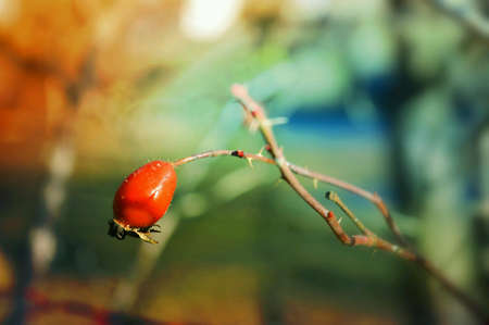 dogrose berry branches. Autumn nature background