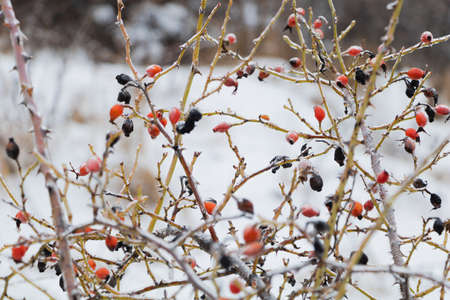 Rosehip (Lat. Rosa) is the genus of Rosaceae plants of the order Rosaceae. Zaporozhye region, Ukraine. December 2010