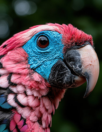 Detailed closeup of a colorful macaw parrot, showcasing its beautiful feathers and striking eyes