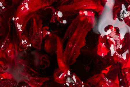 Background of fragrant hibiscus tea close up