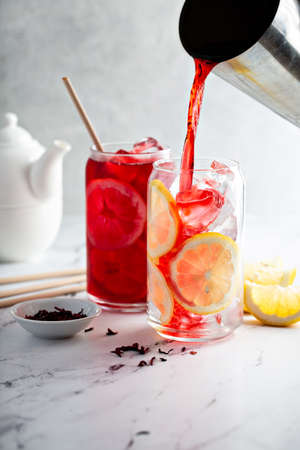 Lemon hibiscus tea served cold with ice