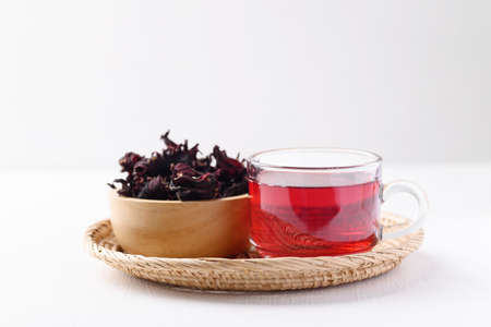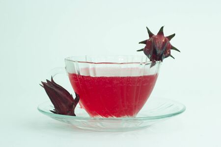 Roselle tea on white background, Healthy herbal drink