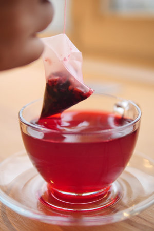 Enjoying a cup of tea with a tea bag infusion