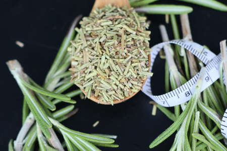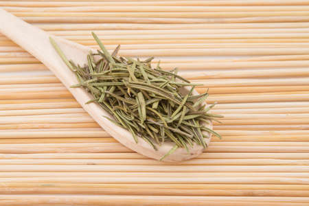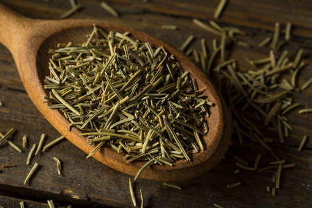 Closeup Aromatic Dried Rosemary in a Wooden Spoon