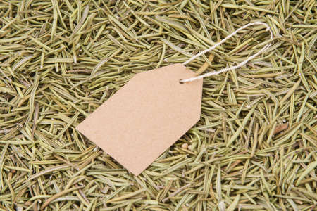 paper label on dried rosemary.