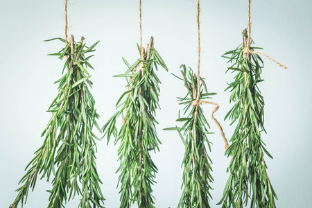 Close up of fresh organic rosemary. Shallow dof