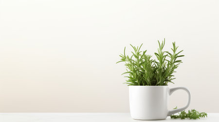 Minimal Style of Rosemary Leaves on a Green Background AI Generated