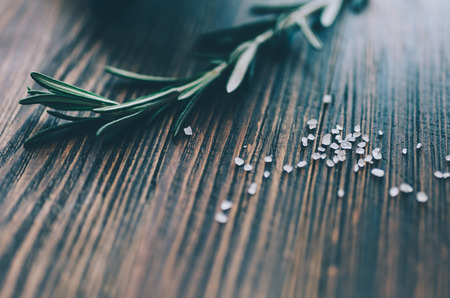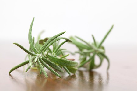 Rosemary Salvia rosmarinus on olive wood
