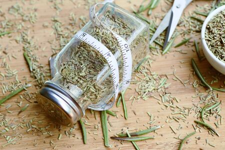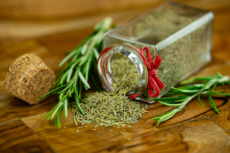 Dried Rosemary Herb Spilled from a Spice Jar