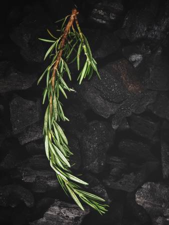 Rosemary herb on charcoal
