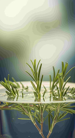 Rosemary on the background of the water. 3d illustration.