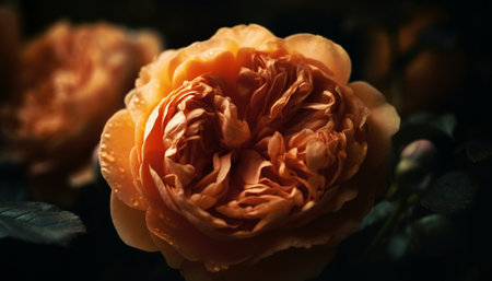 Vibrant peony blossom, wet with morning dew generated by artificial intelligence