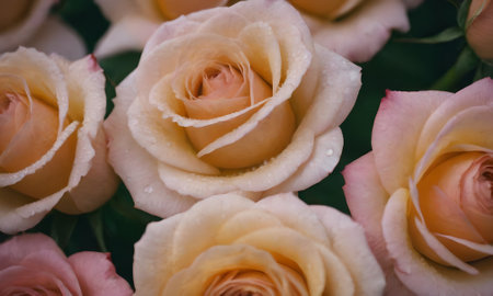 A stunning display of golden roses in a sunlit garden highlights the beauty of nature, with a soft focus that creates a serene and tranquil atmosphere. Perfect for floral themes.