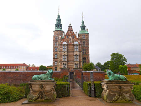 Bronze figure of lion near Rosenborg Slot, the castle of Christian IV in Copenhagen, Denmark.