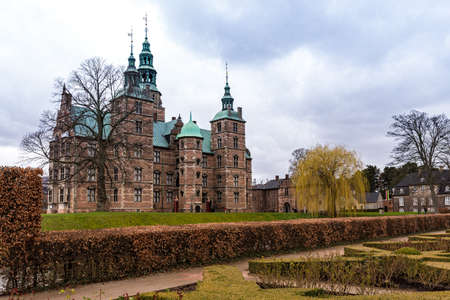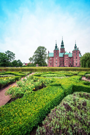 Breathtaking magical landscape with park patterns in famous Rosenborg Castle in Copenhagen, Denmark
