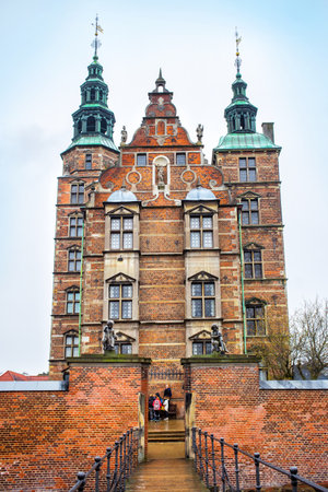 The Rosenborg Castle in Copenhagen, Denmark February 18, 2019 on winter sunny day. Dutch Renaissance style. Rosenborg is the former residence of Danish kings, built on the orders of King Christian IV.