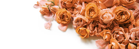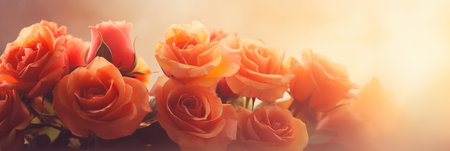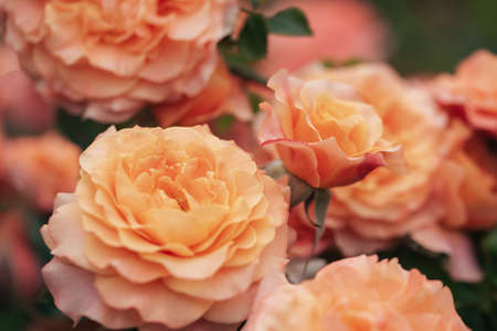 Tender orange roses background. Closeup macro of summer flower. Selective focus. Happy mother day card