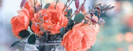 Beautiful roses flowers. Bouquet of roses in a glass jar.
