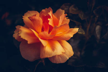Detail of a beautiful peach rose on an unfocused background in the nature