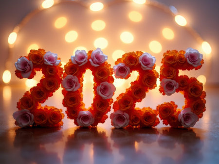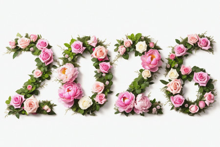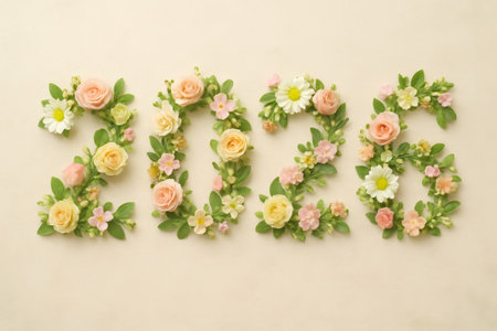A stunning floral arrangement creatively forms the numbers 2020, showcasing a vibrant palette of pink and pastel flowers, symbolizing new beginnings.