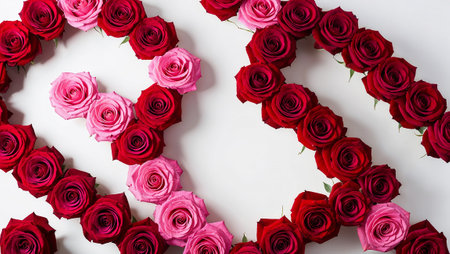 Vibrant red roses and an elegant envelope resting on a soft pink background, creating a romantic and delicate atmosphere.