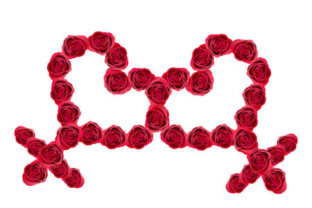 Two bouquets. Romantic still life, red roses on a red background. Postcard Concept for Womens Day and Valentines Day. Copy space. Top view