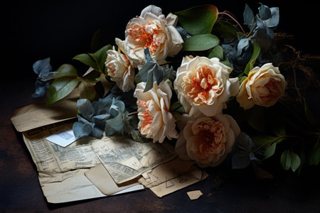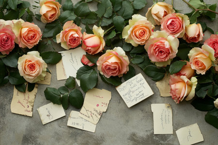 Elegant peach roses and a handwritten letter create a romantic and nostalgic scene, perfect for conveying love, memories, and heartfelt sentiments.