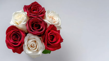 A stunning bouquet featuring red and white roses, symbolizing love and purity, perfect for special occasions, decorations, and as a heartfelt gift.