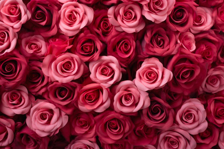 Immerse yourself in the beauty of natural fresh red roses. This pattern wallpaper highlights a vibrant arrangement of red roses captured from a top view, offering a perfect backdrop for decor,