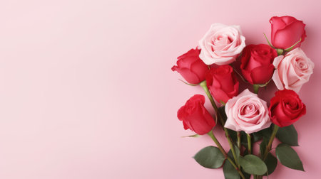 Embrace the romantic charm of a floral arrangement showcasing pink and red roses, ideal for special occasions like Valentine's Day, Easter, birthdays, and Women's Day. The delicate blooms add a touch of nature's beauty to your projects.