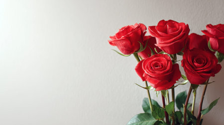 A stunning arrangement of fresh red roses against a soft gray background. Perfect for themes of love, romance, and elegance in any design.