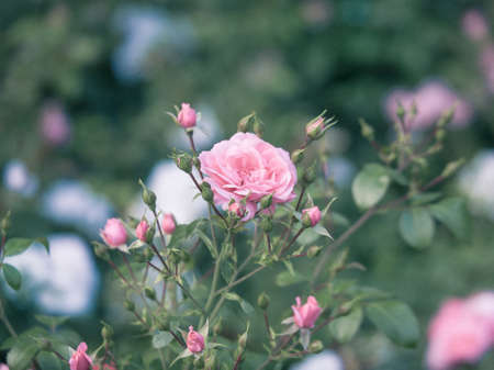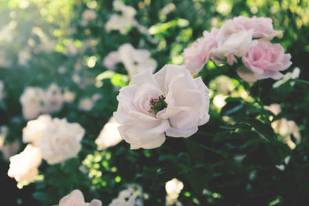 Beautiful light pink roses blooming in the garden during summer time