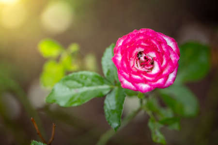 Beautiful pink rose flower in the garden. Selective focus.