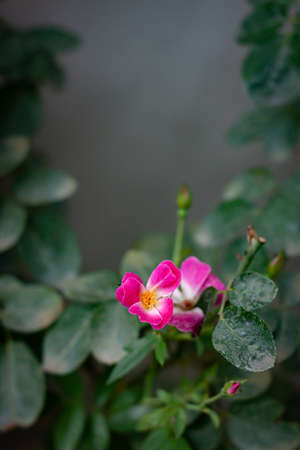 Beauty gently pink flower in wild nature. A beautiful red single rose bud is blossoming in a spring, summer garden. Dark key floral wallpaper. Floriculture, horticulture, growing flowers Romantic mood
