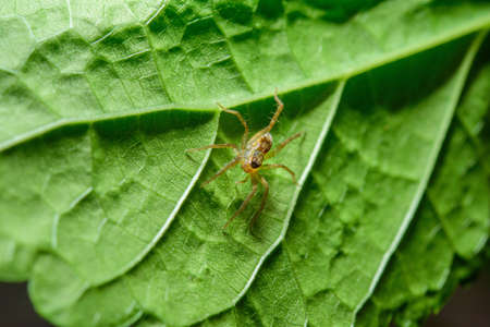 A little spider on the raspberry leaf
